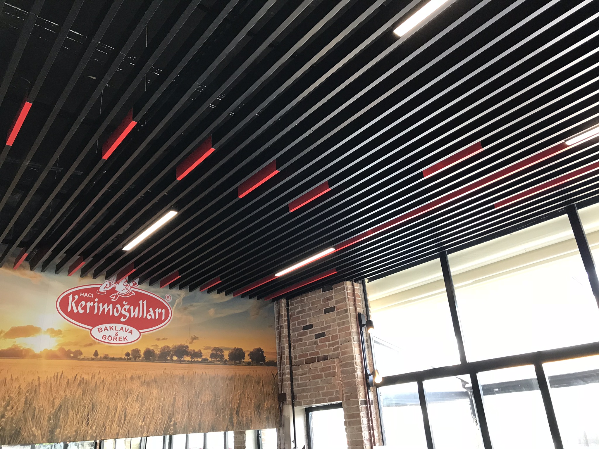 Hacı Kerimoğulları Restoran'da görsellerde yer alan asma tavanlar Trio Tavan Sistemleri tarafından üretilmiştir.